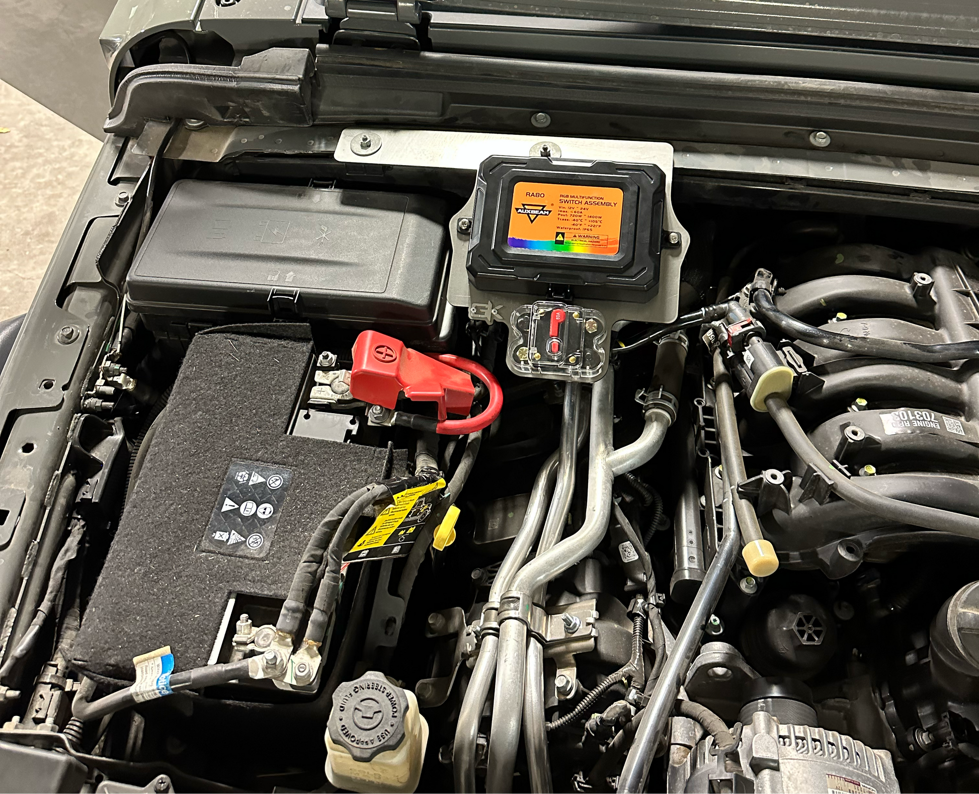 Ever wondered if there was a better way to mount your Auxbeam control box on your 2018+ Wrangler or Gladiator? Now there is, using our conveniently located bracket you can make installation a breeze without the need of drilling holes in your sheet metal or trying to find the perfect spot for the awkward "universal" mount provided in the Auxbeam kits. We even gave you a spot for the circuit breaker right next to the battery so you can use the provided power cables from your Auxbeam kit.