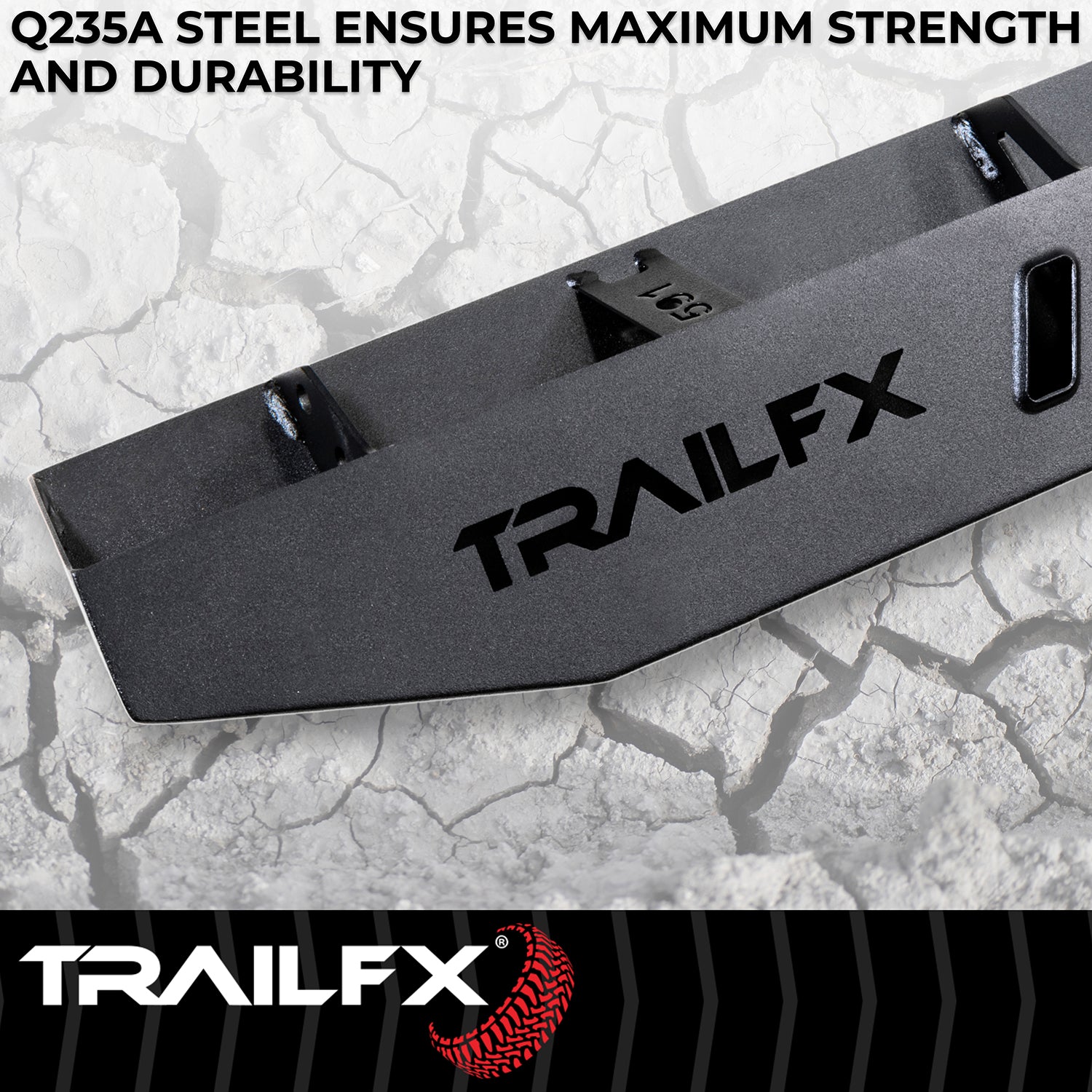 TrailFX Overland Running Boards are a must have for the off-road enthusiast seeking a stylish yet functional step that also provides ample protection to the rocker panel. Precision engineered for your specific vehicle, these black powder coated steel boards mount directly to factory mounting points for hassle-free installation. The vented step area creates a secure steeping surface for safe entry and exit and the rocker-wrap styling protects the underside of the rocker panels from hazards on the trail. Pair these board with TrailFX offroad bumpers and fender flares for complete protection. A full 3 year limited warranty protects your investment.